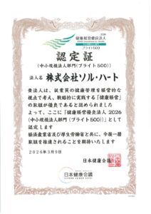 ソル・ハートの『健康経営』vol.32 【健康経営優良法人2026ブライト500認定】